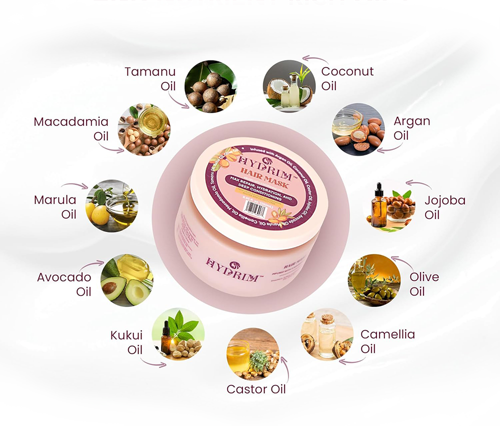 Hydrim™ Botanical Hydrating Hair Mask for Dry, Damaged Hair – Max Repair Deep Conditioner Infused with Argan Oil & 10 Nutrient-Rich Oils – Anti-Frizz Treatment & Intense Hydration